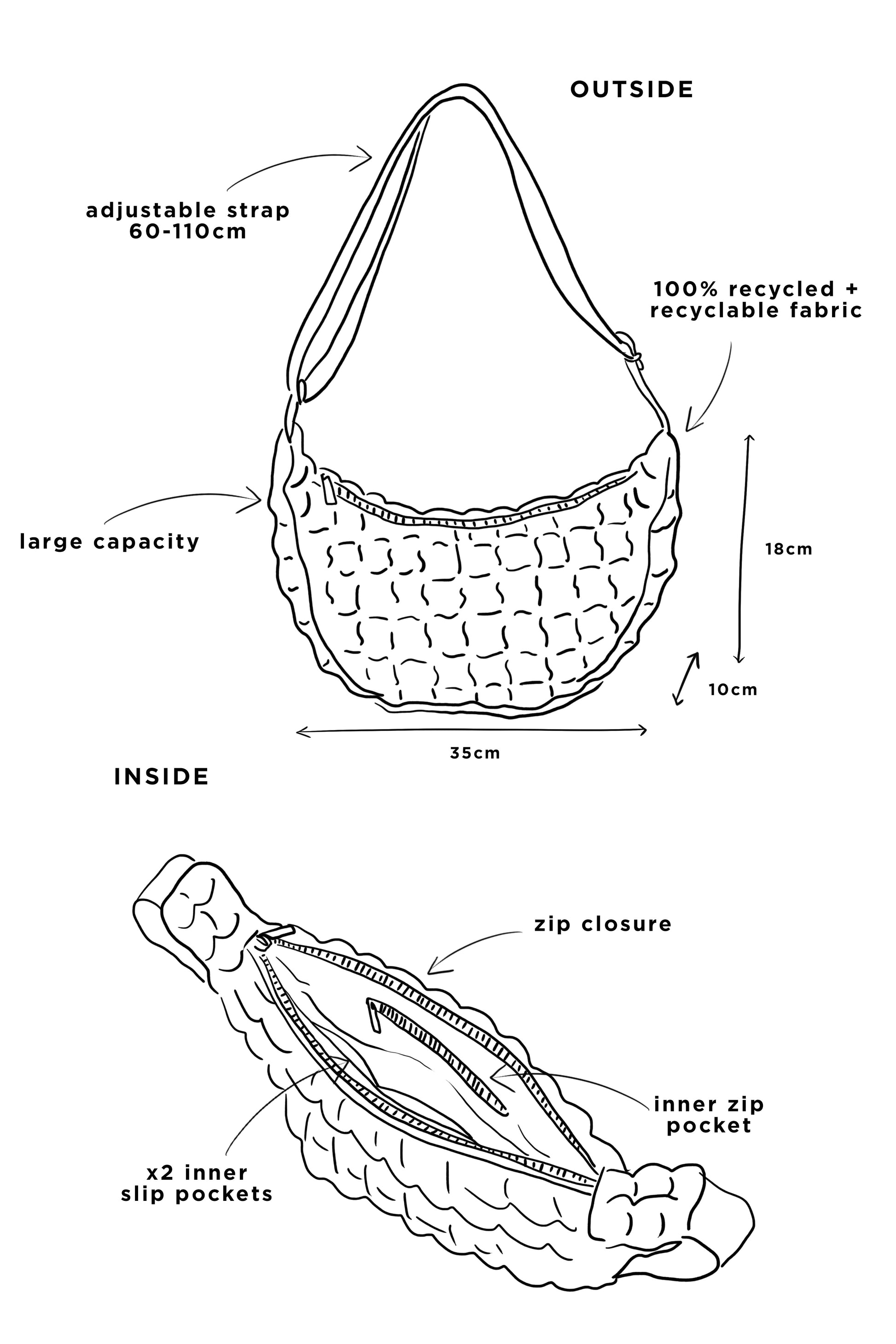 Discover the perfect blend of style and sustainability with our new Crossbody Bag. Thoughtfully crafted from 100% recycled materials, this textured bag proves that fashion and eco-conscious design can go hand in hand.