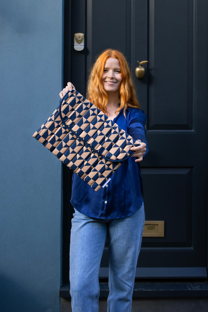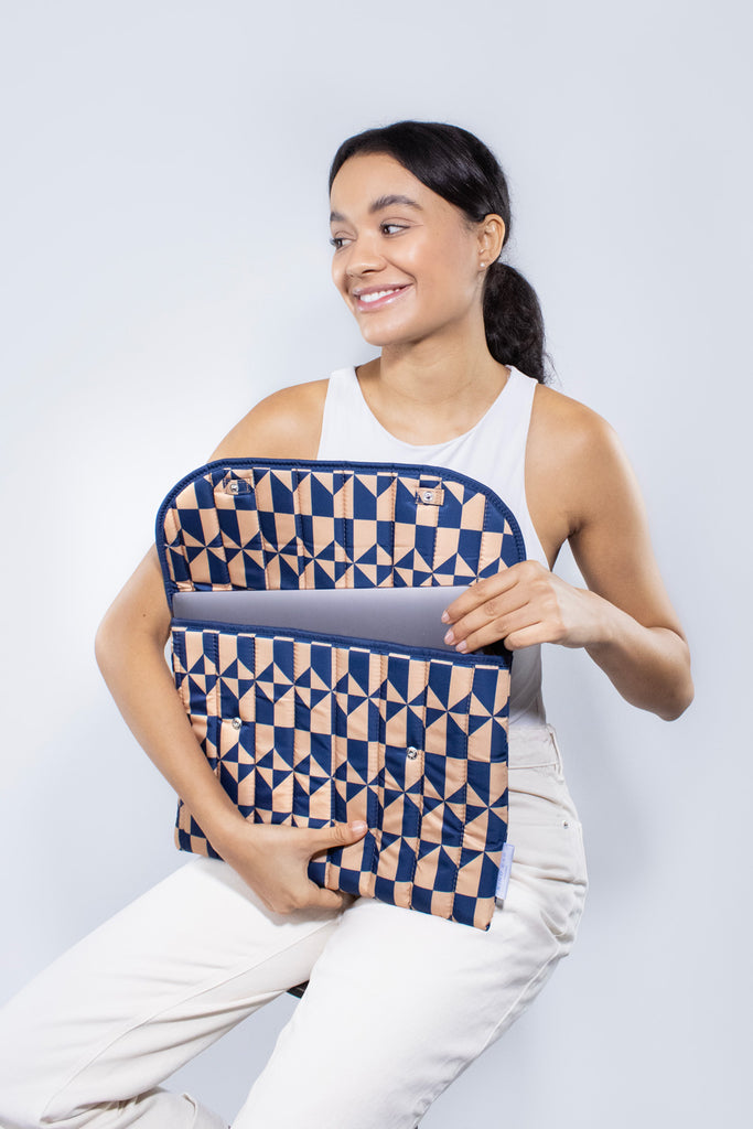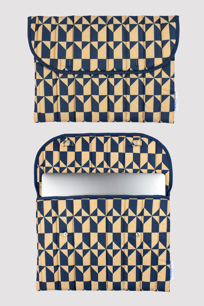 Keep your 16” laptop safe and stylish with our 100% recycled Laptop Sleeve. Featuring quilted padding and a fold-over design secured with metal buttons, this sleeve is water-resistant and hand-washable. Perfect for protecting your device on the go, whether you're commuting, travelling, or working from home.