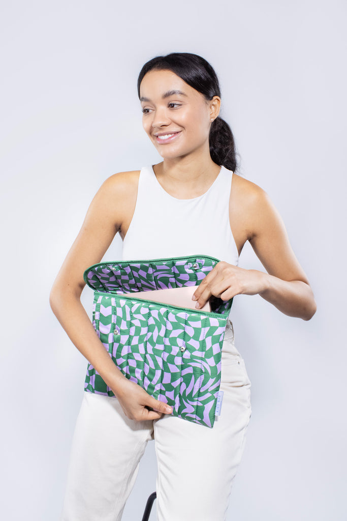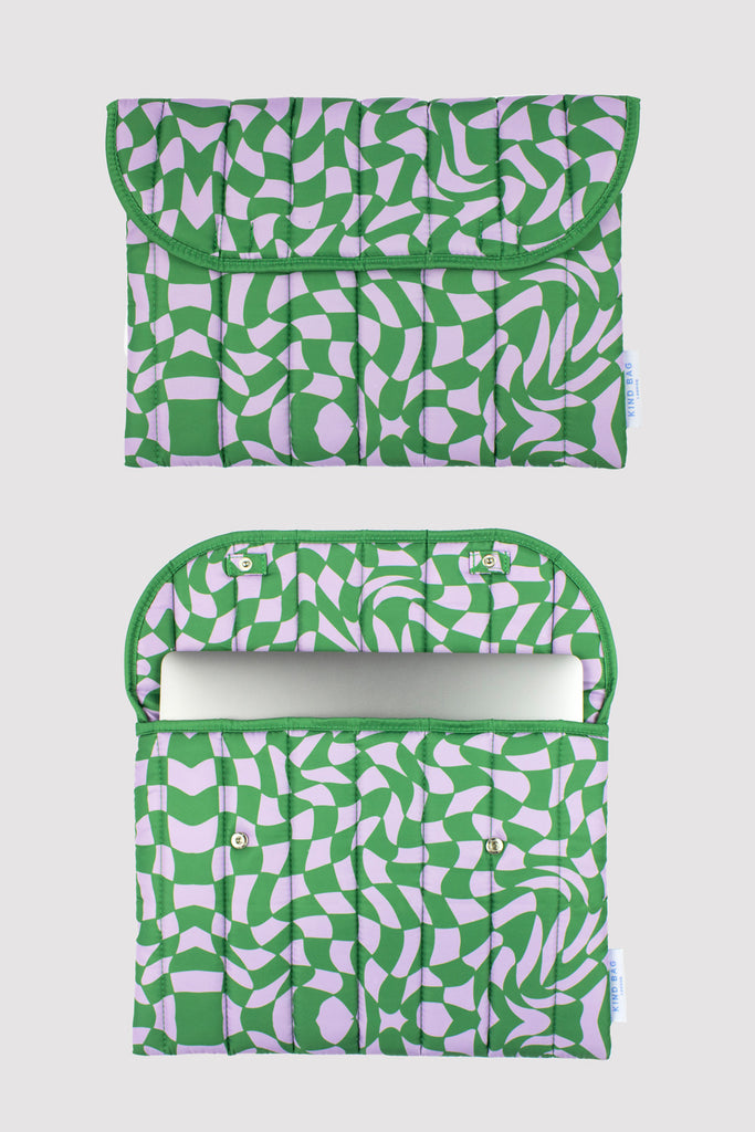 Keep your 13” laptop safe and stylish with our 100% recycled Laptop Sleeve. Featuring quilted padding and a fold-over design secured with metal buttons, this sleeve is water-resistant and hand-washable. Perfect for protecting your device on the go, whether you're commuting, travelling, or working from home.