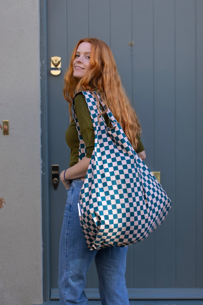 Checkerboard Teal & Beige | Extra Large Reusable Bag