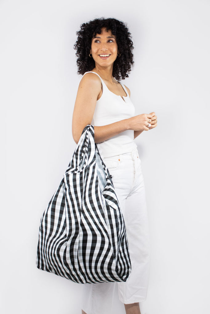 100% recycled material in all Kind Bags eliminates the need for single-use plastic bags. Vegan and cruelty free as well as high-quality, premium, strong material that is water-resistant and lightweight.