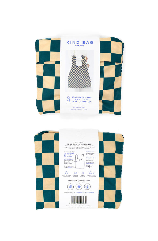 100% recycled material in all Kind Bags eliminates the need for single-use plastic bags. Vegan and cruelty free as well as high-quality, premium, strong material that is water-resistant and lightweight.