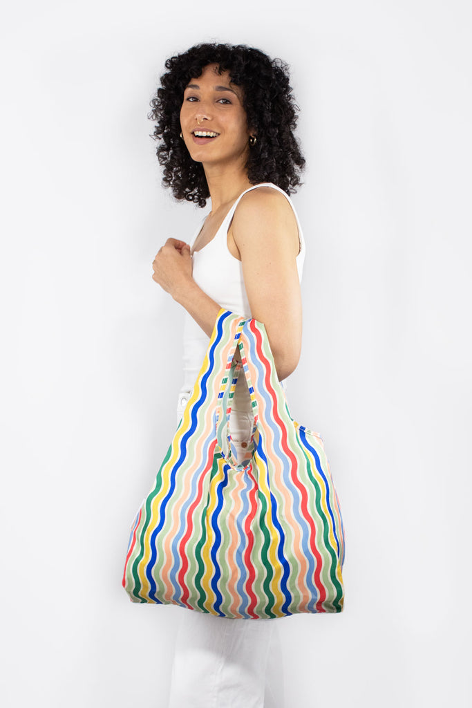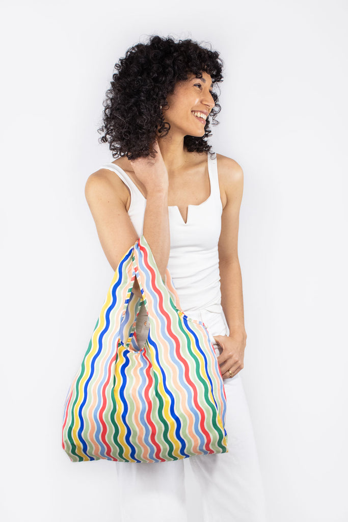 100% recycled material in all Kind Bags eliminates the need for single-use plastic bags. Vegan and cruelty free as well as high-quality, premium, strong material that is water-resistant and lightweight.