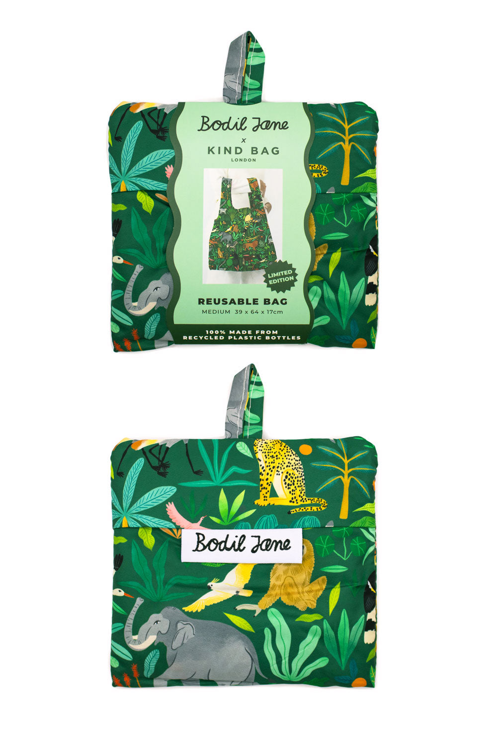 Your bag for every occasion. Lightweight, foldable, and made from recycled materials, it’s the one you’ll grab for groceries, errands, or weekends away — strong enough for heavy loads, yet compact enough to slip in your pocket. Designed in collaboration with artist Bodil Jane, it adds a playful, creative edge to your everyday.