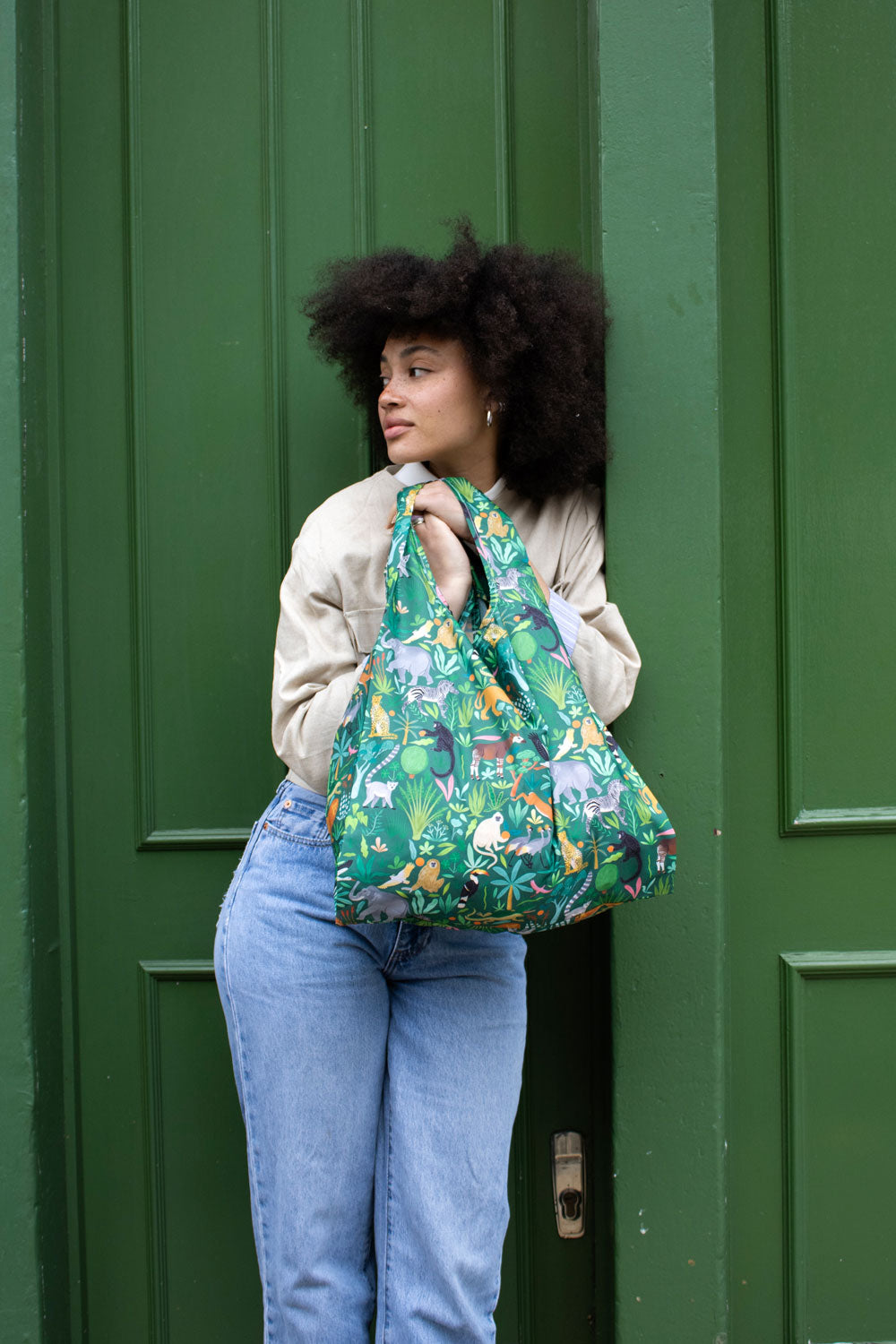 When not in use, the bag folds neatly into its attached built-in pouch, small enough to slip into your pocket or handbag, so you’ll always have a reusable option on hand.