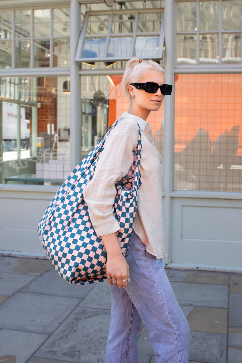 Checkerboard Teal & Beige | Extra Large Reusable Bag
