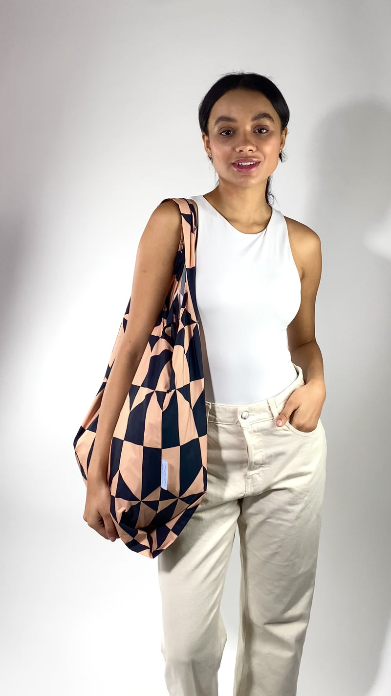Our Extra Large Reusable Bag is designed for those who need more space. Made from 100% recycled materials, this bag can carry up to 25kg, making it perfect for large shopping trips, picnics, laundry and more. Perfect as a beach bag carrying big towels or as an essential daily errand bag, its durable construction and spacious interior ensure you have enough room for all your belongings while staying environmentally conscious.