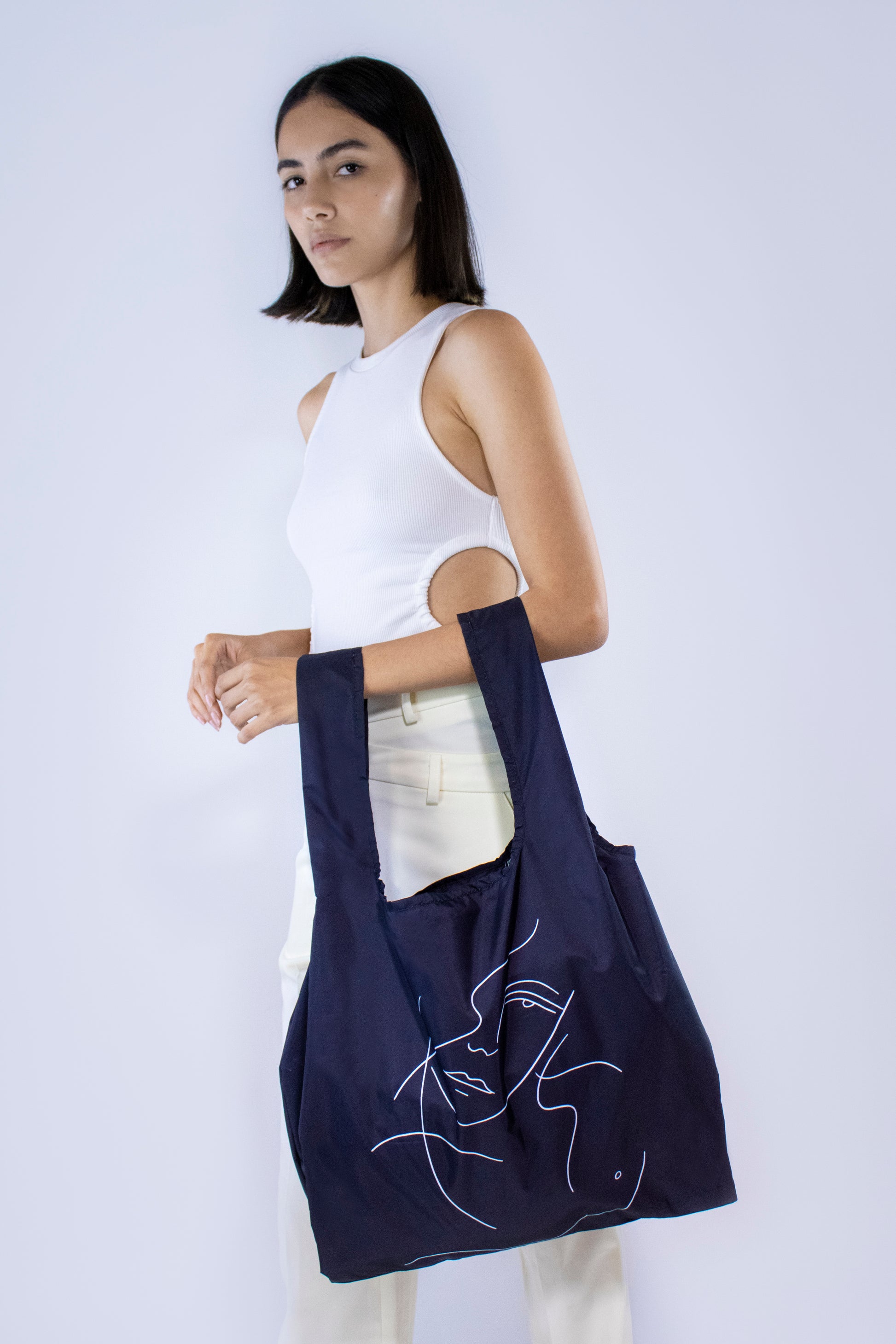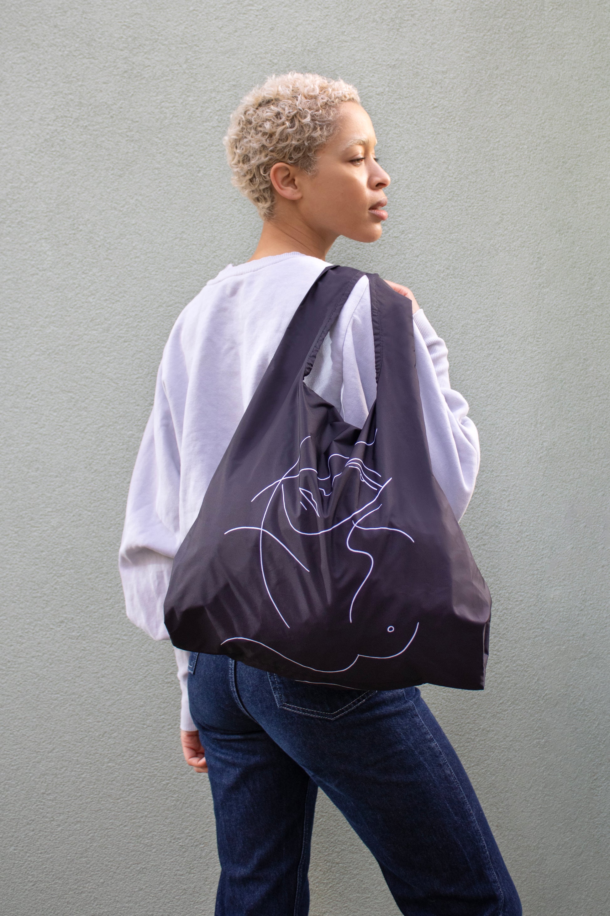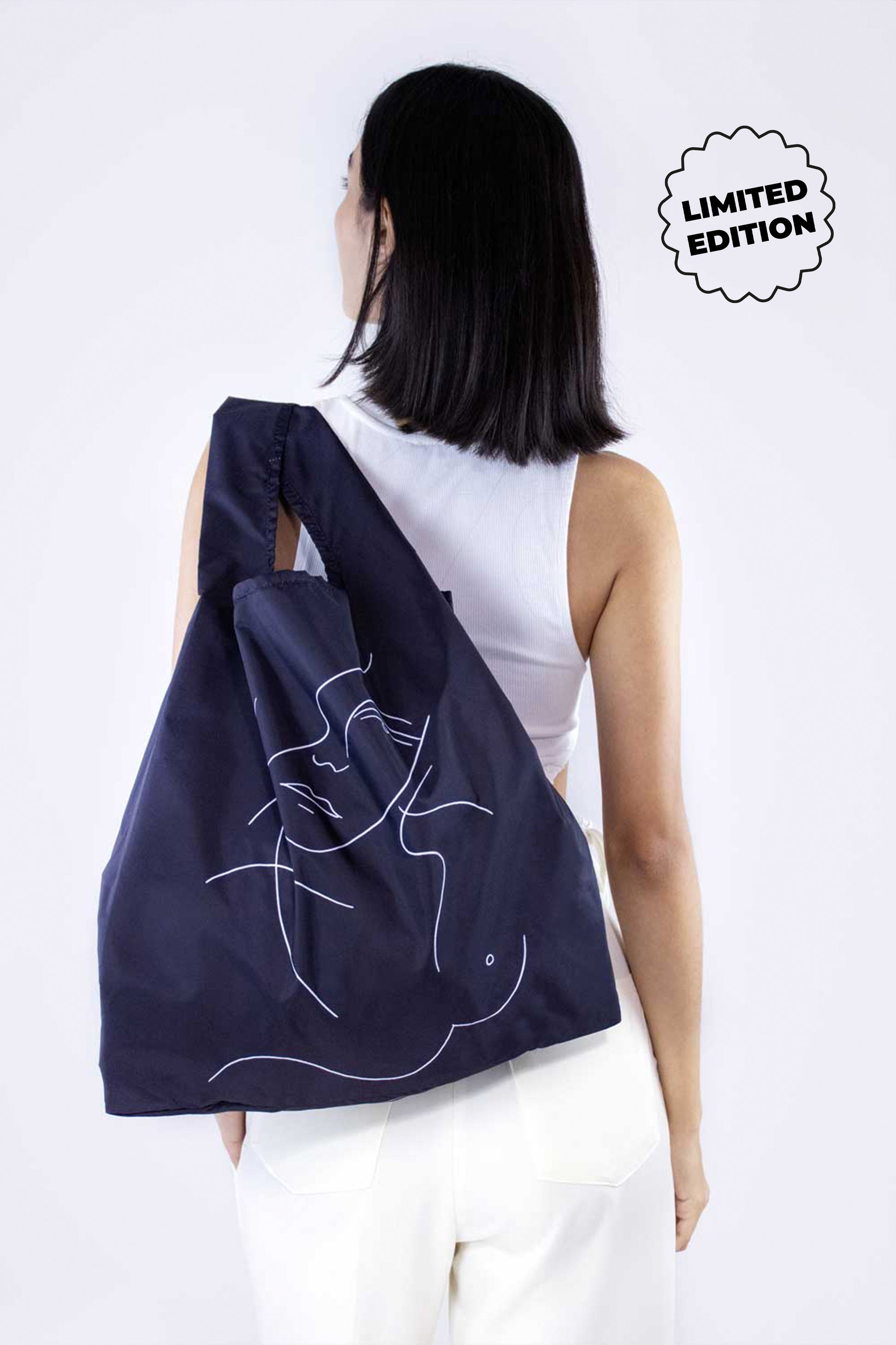 Lightweight, foldable, and made from recycled materials, it’s the one you’ll grab for groceries, errands, or weekends away — strong enough for heavy loads, yet compact enough to slip in your pocket. Created in collaboration with artist Kit Agar, it showcases her signature abstract style, turning a practical essential into a wearable piece of art.