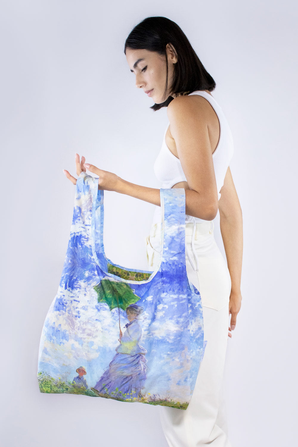Bring Impressionist charm to your everyday with Monet’s Woman with a Parasol. Lightweight, foldable, and durable, this reusable bag turns a masterpiece into a practical essential — perfect for shopping, errands, or travel.