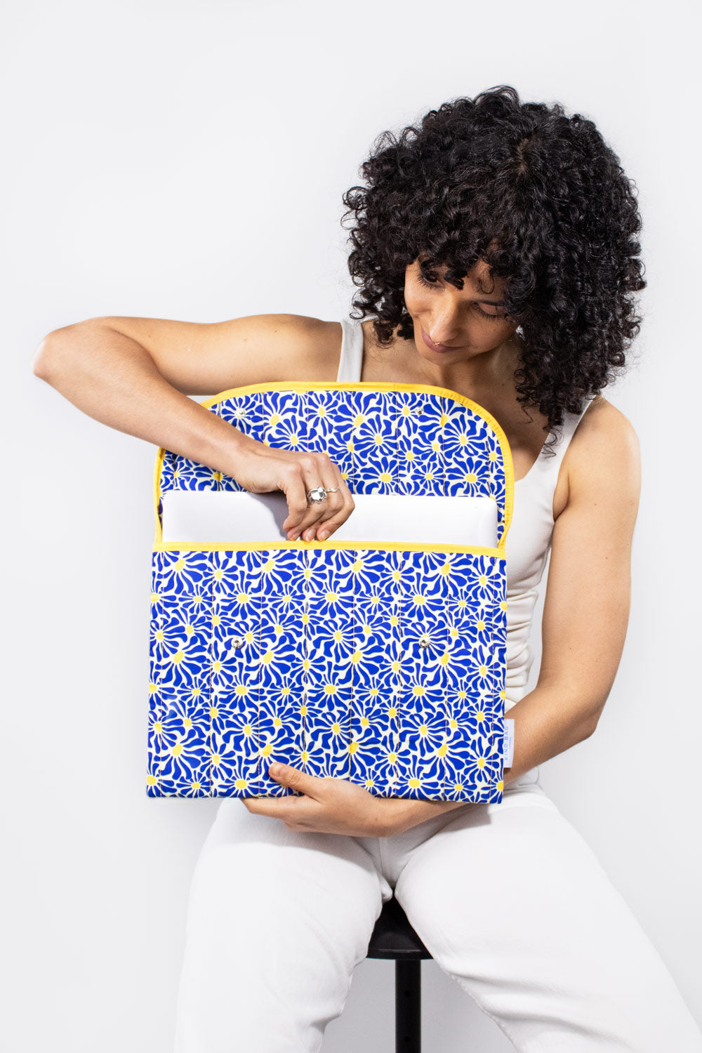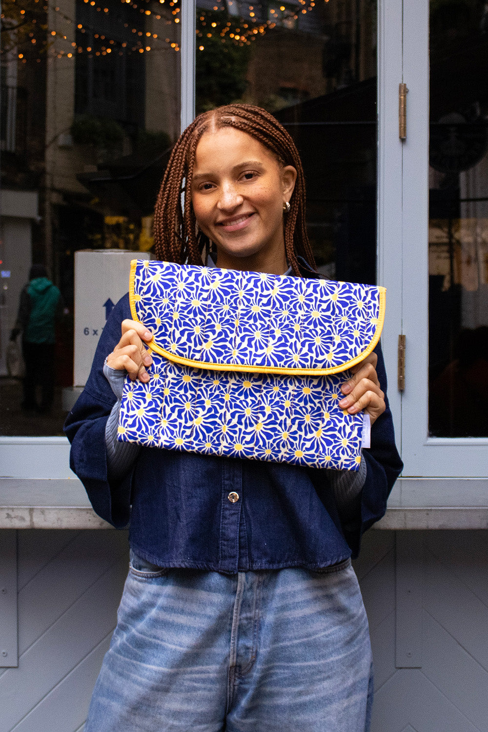 Keep your 16” laptop safe and stylish with our 100% recycled Laptop Sleeve. Featuring quilted padding and a fold-over design secured with metal buttons, this sleeve is water-resistant and hand-washable. Perfect for protecting your device on the go, whether you're commuting, travelling, or working from home.