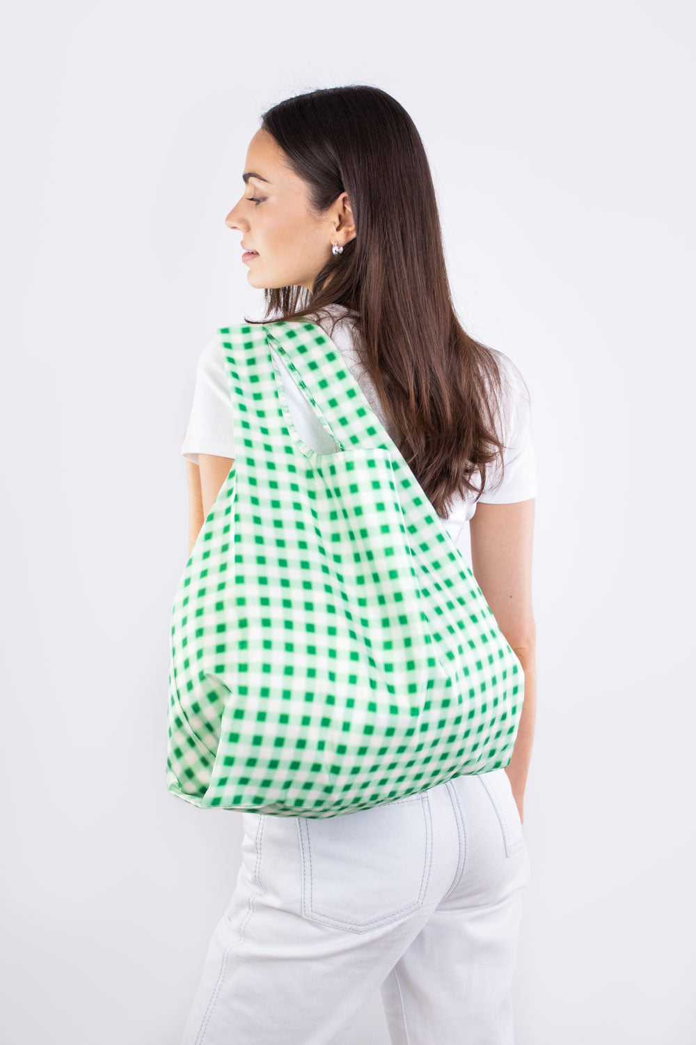 When not in use, the bag folds neatly into its attached built-in pouch, small enough to slip into your pocket or handbag, so you’ll always have a reusable option on hand.
