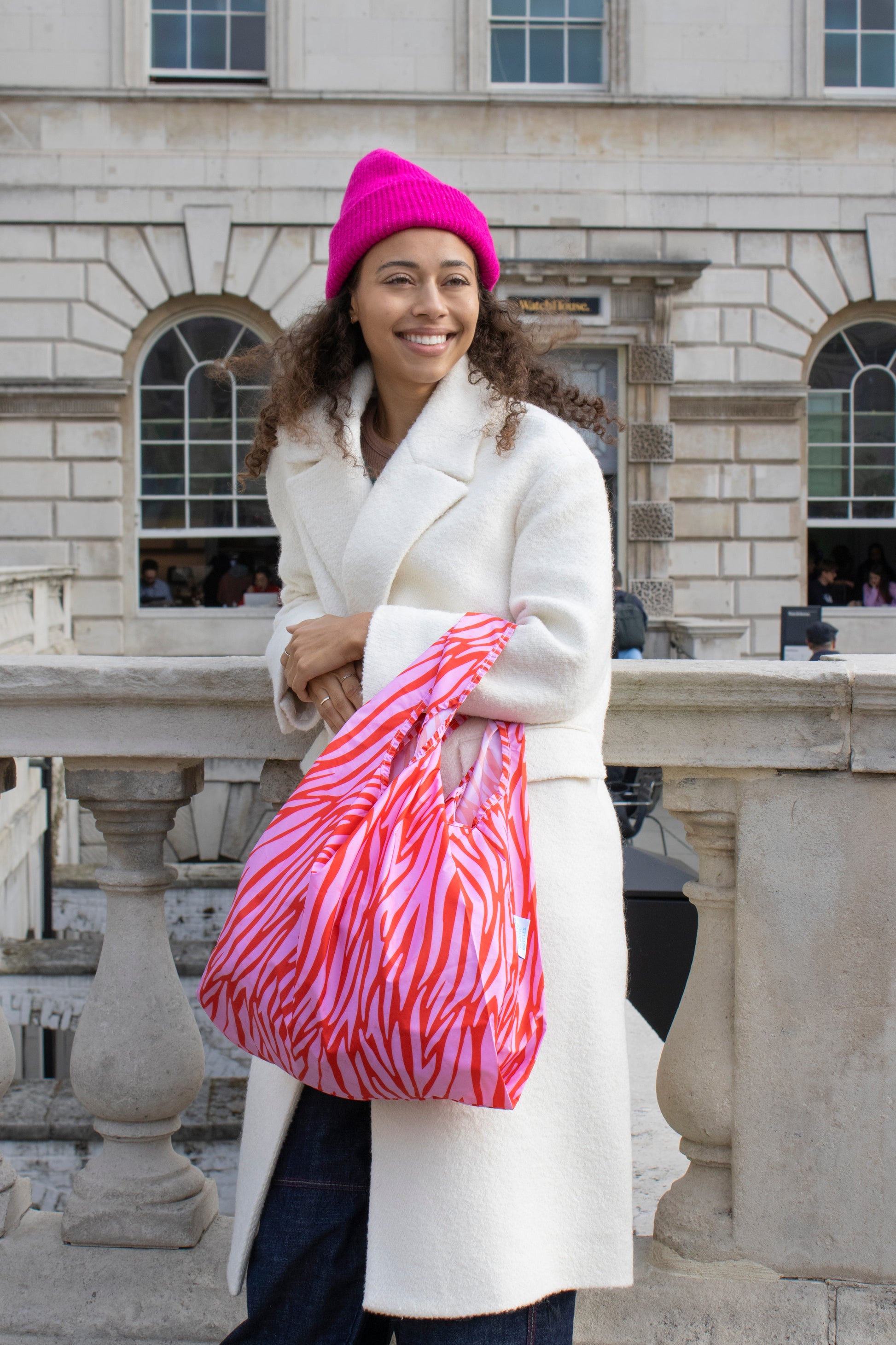 As the original Kind Bag product, our Reusable Bag is your go-to accessory for everyday use. Made from 100% recycled materials, it is lightweight yet capable of carrying up to 20kg. The built-in pouch allows you to fold the bag into a compact size for easy storage in your handbag or backpack. Ideal for grocery shopping, errands, and travel, this bag combines practicality with sustainability, ensuring you're never without a reusable bag.